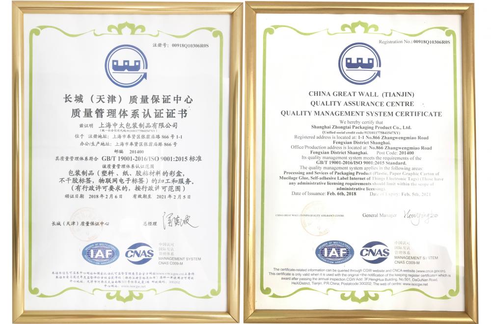 2018年2月06日,我司顺利通过了GB/T19001-2016/ISO9001:2015标准质量管理体系认证。